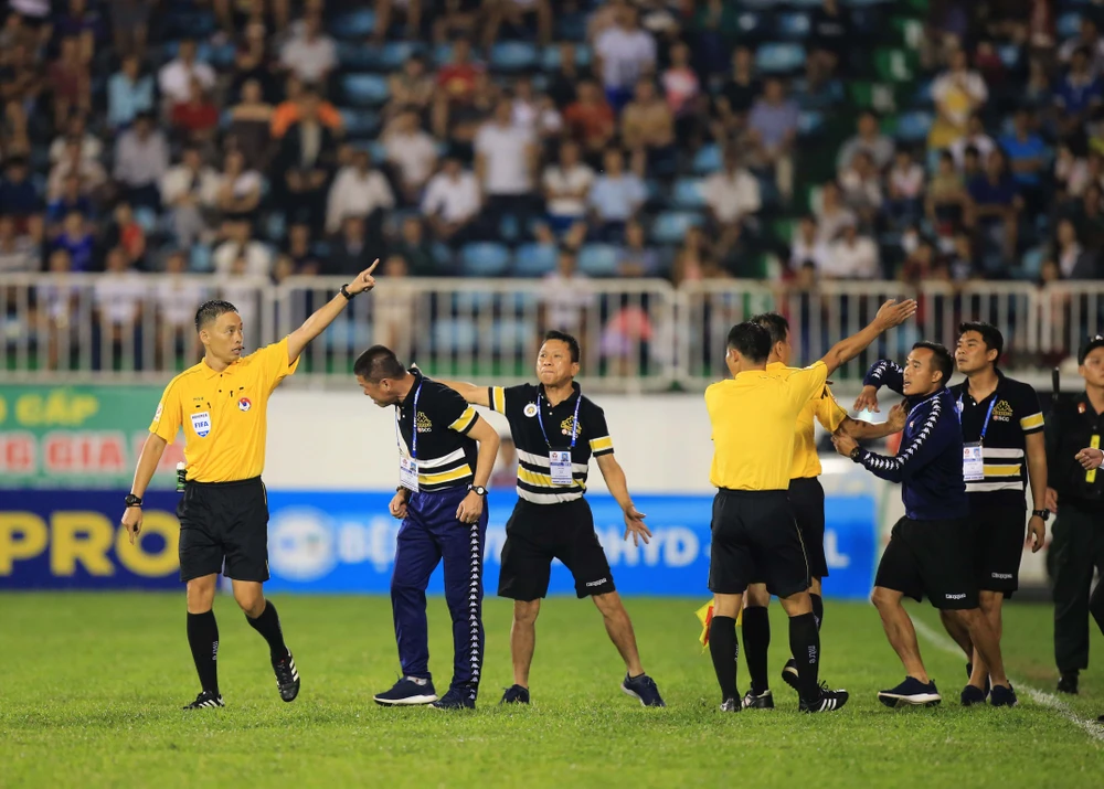 Ông Nghiêm cũng nói về cách điều hành của tổ trọng tài Ngô Duy Lân: Trọng tài dường như đã làm mất đi ít nhiều hình ảnh đẹp của trận đấu. Tôi không nói ép nhưng các tình huống 50-50 trọng tài bị căng cứng nên có những quyết định bất lợi cho chúng tôi. Điều đó dẫn đến việc tôi mất kiểm soát”.