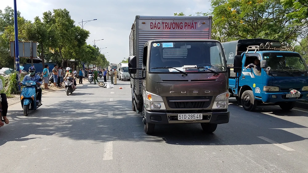 Vụ tai nạn xảy ra trên đường Trần Văn Giàu (quận Bình Tân, TP.HCM) khiến cô gái bị cán tử vong. Ảnh HT.