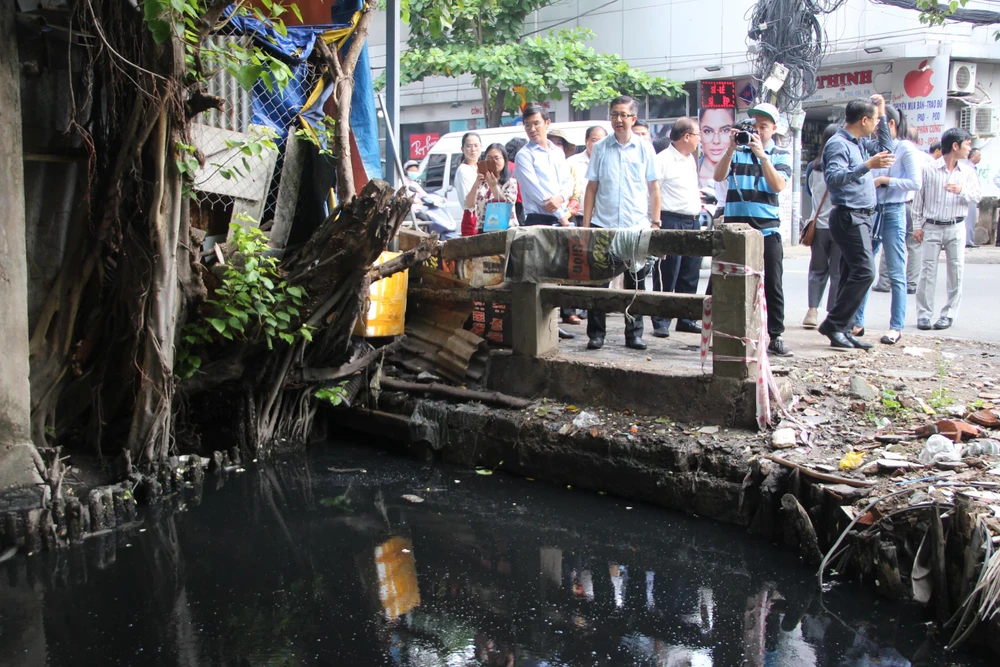 Đoàn giám sát HĐND TPHCM giám sát tiến độ và hiệu quả triển khai các dự án chống ngập trên địa bàn quận Bình Thạnh. Ảnh: NC