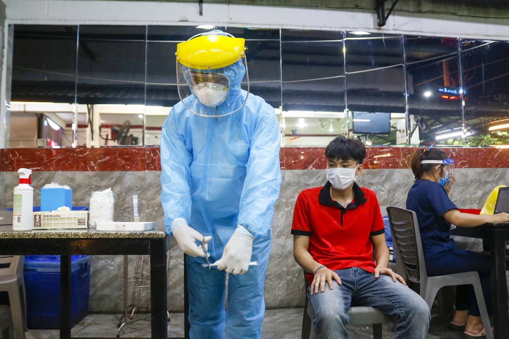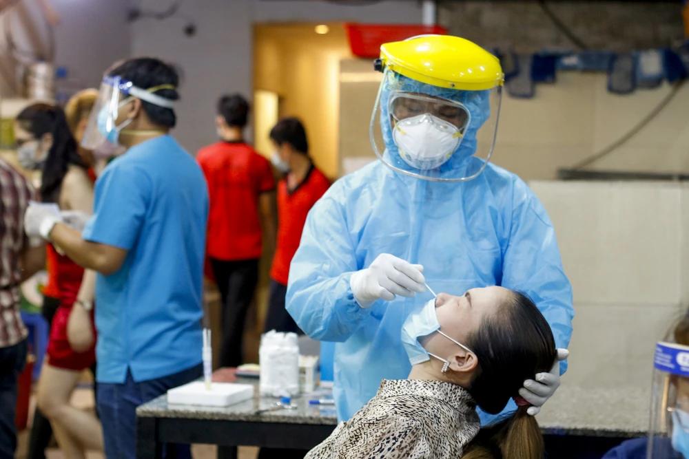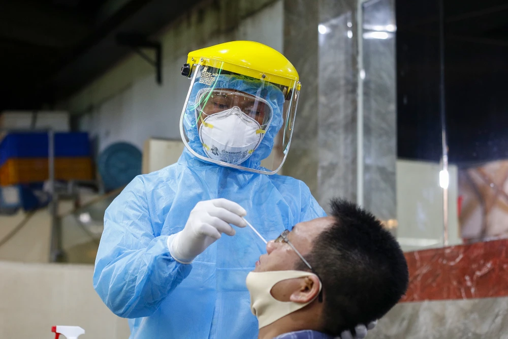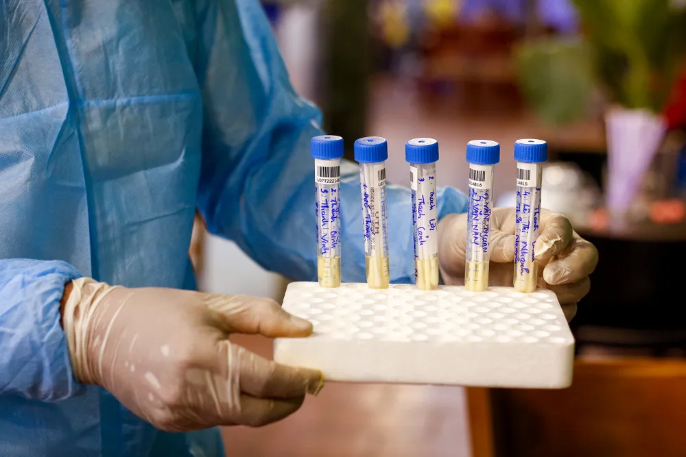 Công tác lấy mẫu diễn ra nhanh chóng, theo quy trình an toàn.