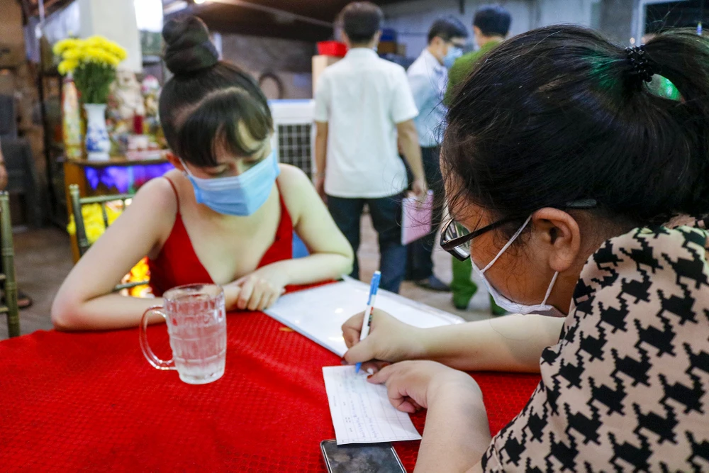 Tại một quán nhậu trên đường Trường Sa, (phường 13, quận Bình Thạnh) khi cơ quan chức năng có mặt kiểm tra hầu hết khách đứng lên rời khỏi ghế sau đó nhanh chóng thanh toán và rời đi.