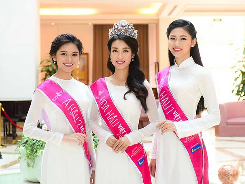Hoa hậu Đỗ Mỹ Linh, á hậu 1 Ngô Thanh Thanh Tú và á hậu 2 Huỳnh Thị Thùy Dung tại cuộc thi Hoa hậu Việt Nam 2016. Ảnh: VOV.VN