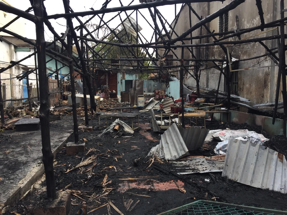 Quán cầy tơ bị thiêu rụi hoàn toàn. Ảnh: KD