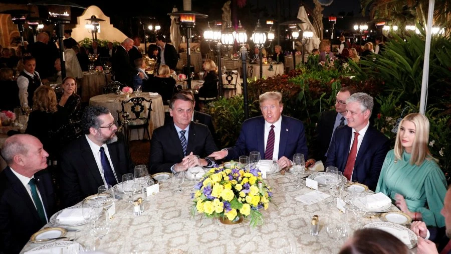 Tổng thống Mỹ và người đồng cấp Brazil dùng bữa tối ngày 7-3. Ảnh: REUTERS