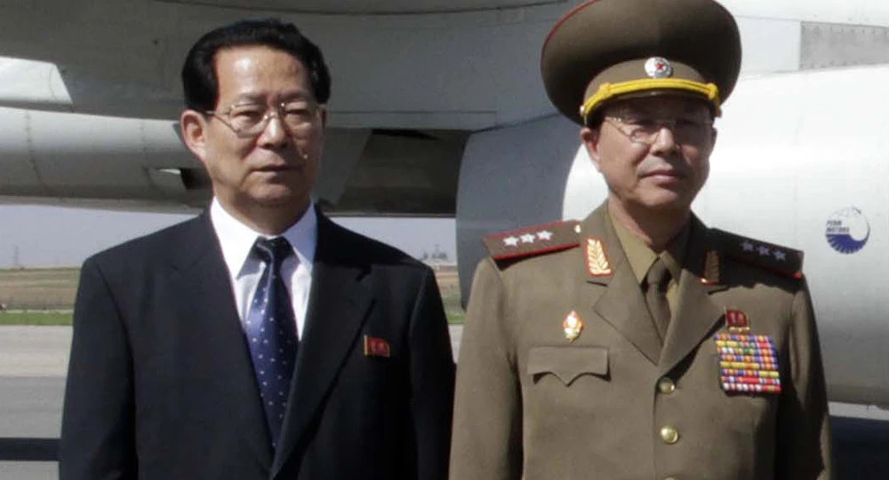 Ông Ri Yong Gil (phải) tại sân bay Bình Nhưỡng năm 2013. Ảnh: AP