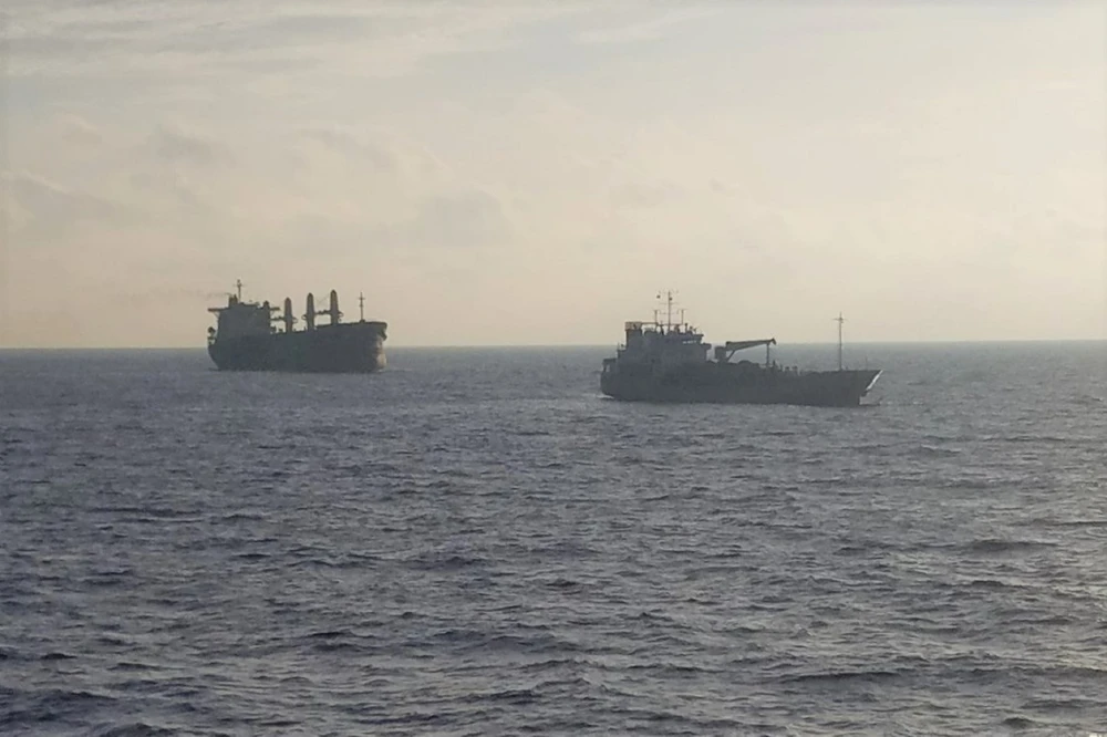 Tàu 905 kéo tàu Pacific 07 về gần đảo Phú Quý. Ảnh: CTV.