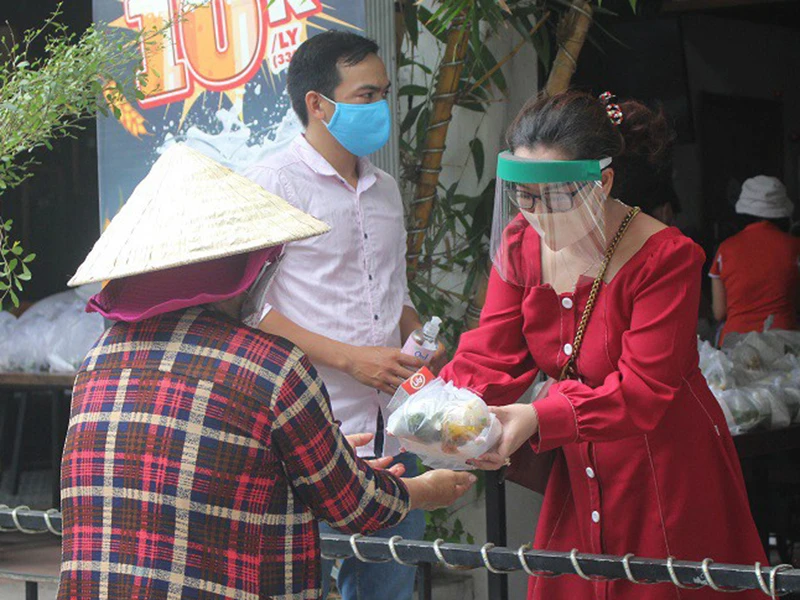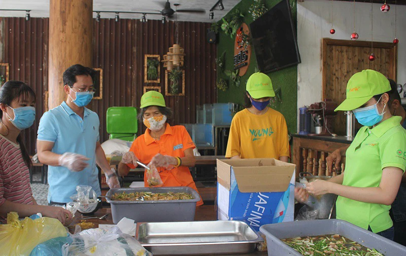 | Các shipper giao cơm từ thiện miễn phí Khi TP yêu cầu các hàng quán, dịch vụ không thiết yếu đóng cửa để ngăn chặn sự lây lan của dịch bệnh, có rất nhiều người gặp khó khăn bởi sự ảnh hưởng này. Vì thế, tôi nghĩ ngay đến việc tận dụng căn bếp của những nhà hàng đang phải tạm đóng cửa để nấu những suất ăn giúp đỡ những người khó khăn trong mùa dịch. Cơ sở vật chất nấu nướng đã có, chúng tôi chỉ cần chuyển thực phẩm đến và nấu. Địa điểm nấu cơm có thể thay đổi liên tục nếu được sự hỗ trợ mặt bằng từ phía các chủ nhà hàng, quán ăn. Với hai đầu bếp chính và khoảng 10 tình nguyện viên, hằng ngày quán có thể nấu từ 500 đến 1.000 phần cơm với ba món gồm món chính là cá, thịt, món rau và canh. Quán bắt đầu phát cơm từ 10 giờ 30, từ thứ Hai đến thứ Sáu hằng tuần. Để thực hiện đúng yêu cầu giãn cách xã hội và giúp đỡ thêm nhiều hoàn cảnh khó khăn, không có điều kiện đi lại, quán kết nối với những người xe ôm quanh khu vực phường 25, quận Bình Thạnh để đưa cơm miễn phí tới từng xóm nghèo trên địa bàn. Tất cả người làm việc ở quán cùng đội ngũ vận chuyển bằng xe đến tận nhà người dân nghèo đều làm miễn phí. Với mô hình từ thiện này thì bất cứ nhà hàng nào muốn làm, tôi sẽ kết nối đến các đơn vị để được nhận thực phẩm miễn phí. Cá nhân, tổ chức nào muốn đóng góp tiền mặt, tôi sẽ giới thiệu đơn vị tài trợ thực phẩm để họ ủng hộ trực tiếp. Anh NGUYỄN TUẤN KHỞI, chủ một doanh nghiệp thực phẩm ở TP.HCM đồng thời cũng là người khởi xướng quán cơm dã chiến |