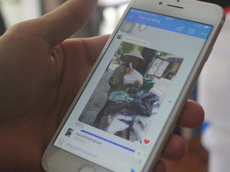 Các tình nguyện viên báo cáo qua phần mềm Zalo việc đã giao cơm đến tay người cần nhận. Ảnh: NHẬT TIẾN