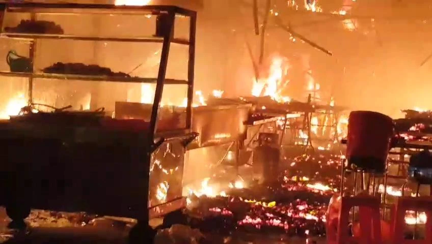Ngọn lửa sau đó lan nhanh rồi bao trùm toàn bộ quán cơm. Quá hoảng sợ, mọi người hô hoán nhau bỏ chạy ra ngoài, đồng thời báo lực lượng PCCC.