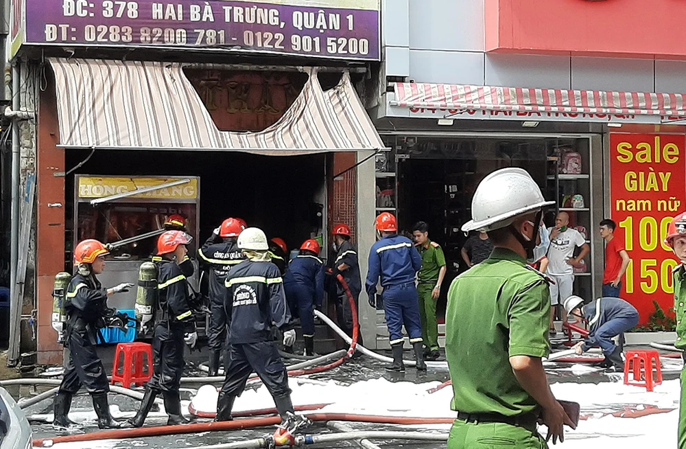 Cảnh sát PCCC huy động hàng chục cán bộ, chiến sĩ có mặt khống chế hỏa hoạn trong ít phút. Hai người mắc kẹt được đưa ra ngoài an toàn.