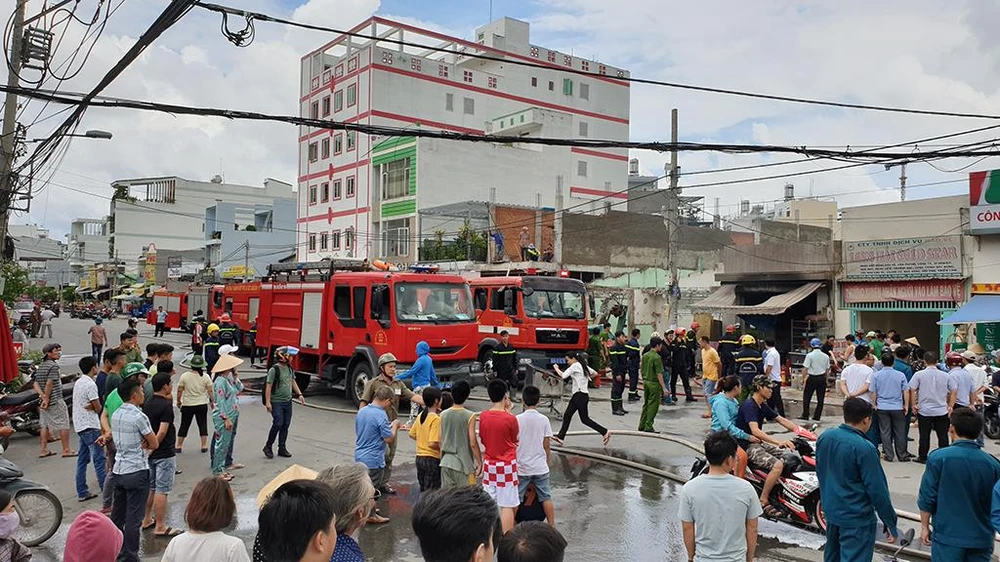 Khói lửa bùng lên dữ dội phong tỏa lối ra vào duy nhất khiến không ai dám tiếp cận. Chừng 15 phút sau, Đội Cảnh sát PCCC quận Tân Bình, quận 11 có mặt.