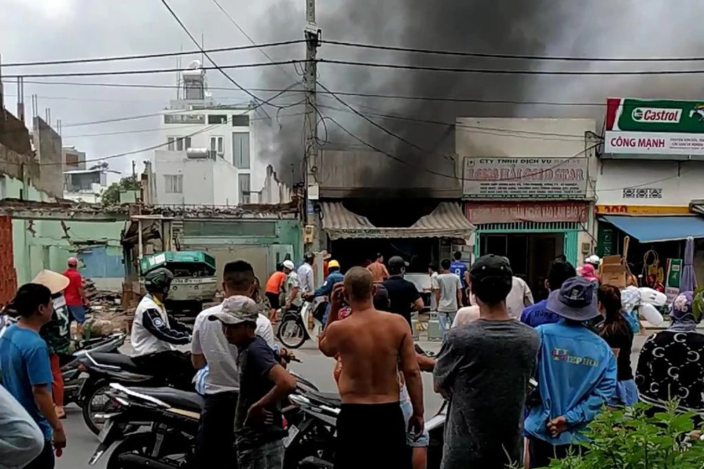 Hỏa hoạn bùng phát sau tiếng nổ ở quán cơm trên đường Phạm Văn Bạch (quận Tân Bình). Ảnh NT.