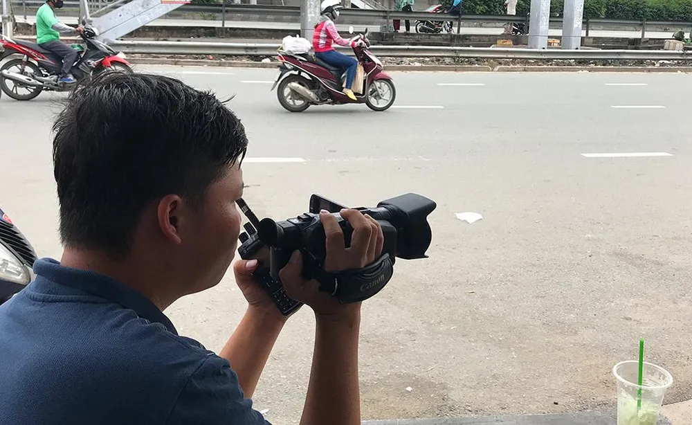 CSGT mặc thường phục ghi hình, báo cho tổ CSGT công khai xử lý. Ảnh: N.BÌNH
