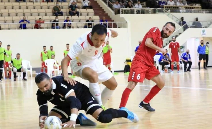 Tay săn bàn Nguyễn Minh Trí (8, trắng) không sắc nét tại hai trận Play off gặp Lebanon. Ảnh: VFF