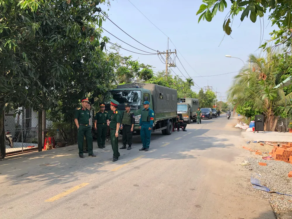 Lực lượng quân đội có mặt tại khu vực vây ráp kẻ xả súng ở Củ Chi. Ảnh: HT