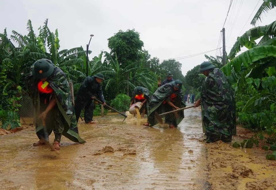 Tại huyện Cam Lộ, nơi nước dâng cao nhấn chìm nhiều nhà dân và những khu vực vùng trũng thấp ven sông Hiếu, lực lượng quân đội được huy động để giúp dân sơ tán và chống lũ.
