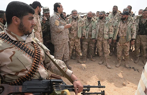 Trong khi đó tại Syria, quân đội chính phủ có máy bay Nga yểm trợ đang chuẩn bị tấn công tái chiếm thành cổ Palmyra. Ngày 24-3, quân đội chỉ còn cách cửa ngõ Palmyra 800 m (ảnh). Palmyra đã bị IS chiếm gần một năm nay.