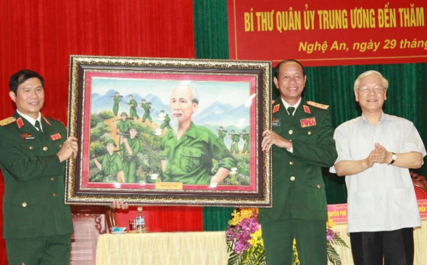 Tổng Bí Thư Nguyễn Phú Trọng tặng quà cho Bộ Tư lệnh Quân khu 4.