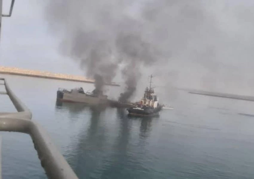 Tàu Konarak lúc bị trúng tên lửa. Ảnh: IRANINTL