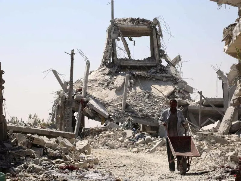 Cảnh đổ nát ở Manbji, gần ngôi làng bị không kích. Ảnh: Getty Images