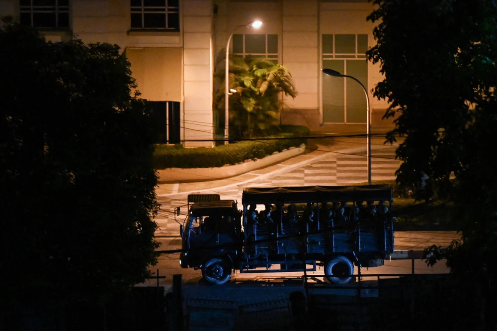 Xe tải chở binh sĩ Myanmar tham gia vụ đột kích TP Yangon ngày 6-3. Ảnh: AFP
