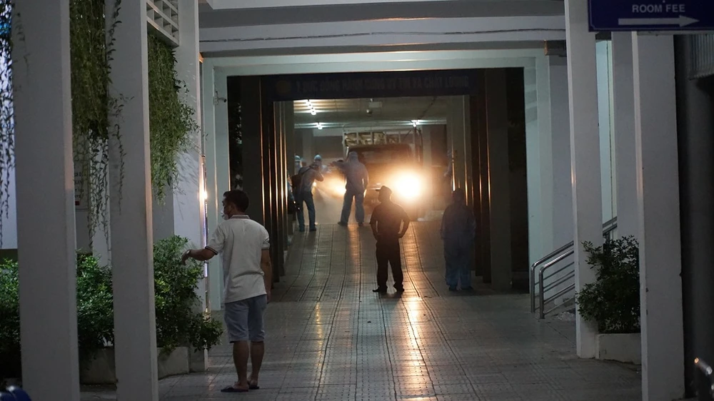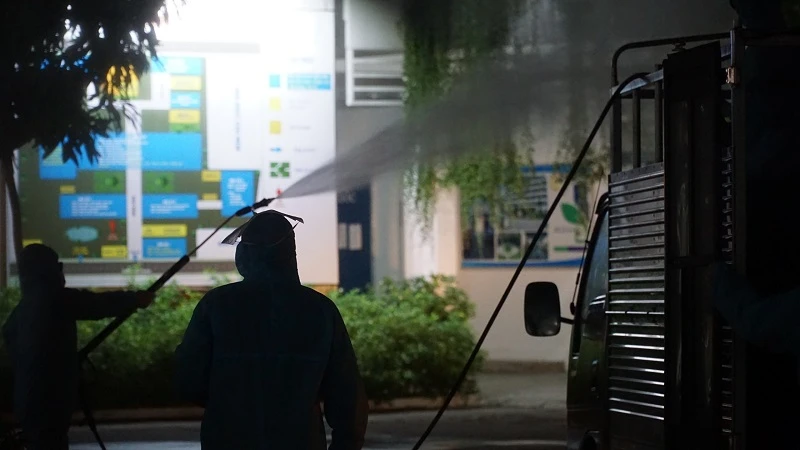 Lực lượng quân đội khử trùng toàn bộ hai bệnh viện. Ảnh: BÙI TOÀN