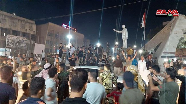 Đám đông người dân cũng tụ tập ở các tuyến đường Hasakeh để ăn mừng việc triển khai quân của chính phủ Damascus. Họ vẫy cờ Syria và thổi còi để ăn mừng.