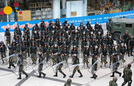 Các binh sĩ Thái Lan chuẩn bị tuần tra ở Bangkok ngày 2-6. Ảnh: REUTERS