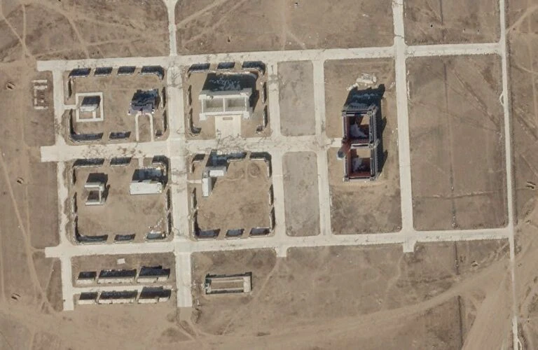 Hình ảnh vệ tinh chụp mô hình dinh lãnh đạo Đài Loan và các vùng lân cận tại căn cứ huấn luyện chiến thuật kết hợp Chu Nhật Hòa ở Nội Mông (Trung Quốc). Ảnh: SPUTNIK