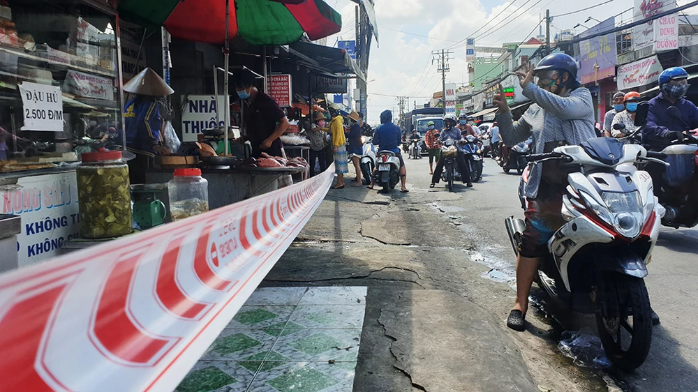 Trong đó, điểm chợ tự phát Thạch Đà (phường 14 quận Gò Vấp) là khu vực tập trung nhiều gian hàng, điểm bán tự phát, di động dọc theo cả tuyến đường Phạm Văn Chiêu và đường số 59 xung quanh chợ.