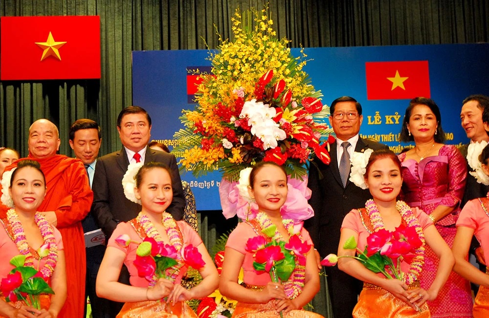Phát biểu tại buổi lễ, Chủ tịch UBND TP Nguyễn Thành Phong khẳng định việc hai nước chính thức thiết lập quan hệ ngoại giao là một sự kiện trọng đại, đánh dấu trang sử mới trong quan hệ giữa Việt Nam - Campuchia.