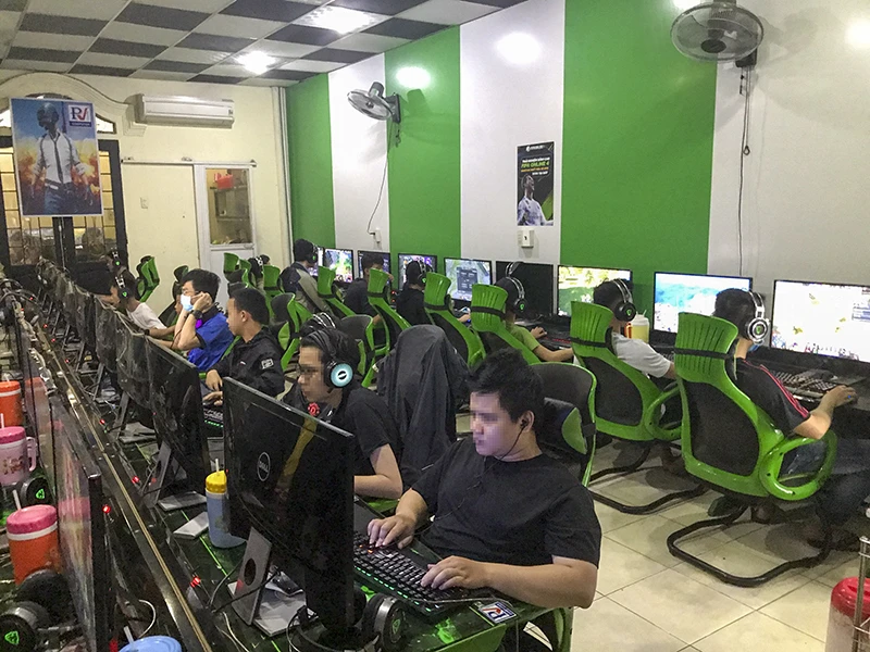 Quán Internet thời điểm cơ quan chức năng kiểm tra. Ảnh: QT