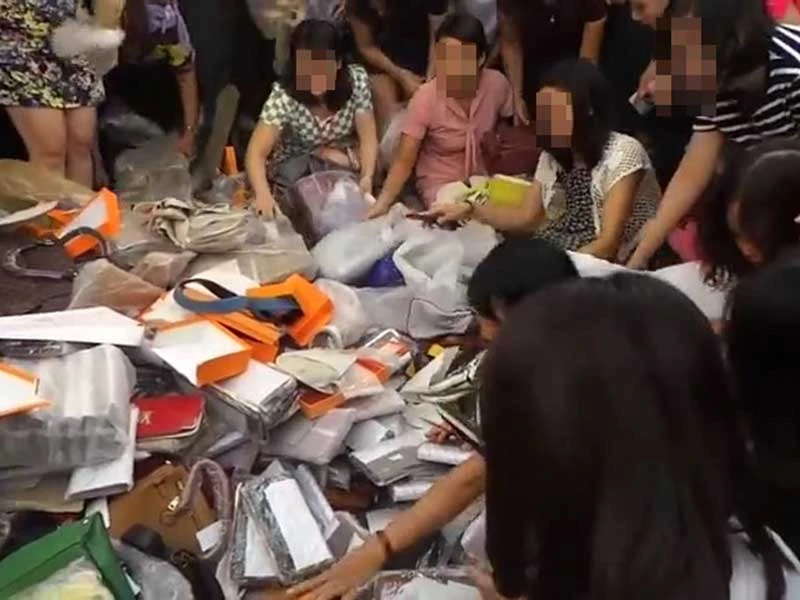 Tranh nhau lấy hàng giả về dùng. (Ảnh cắt từ clip)
