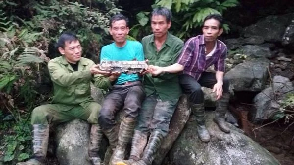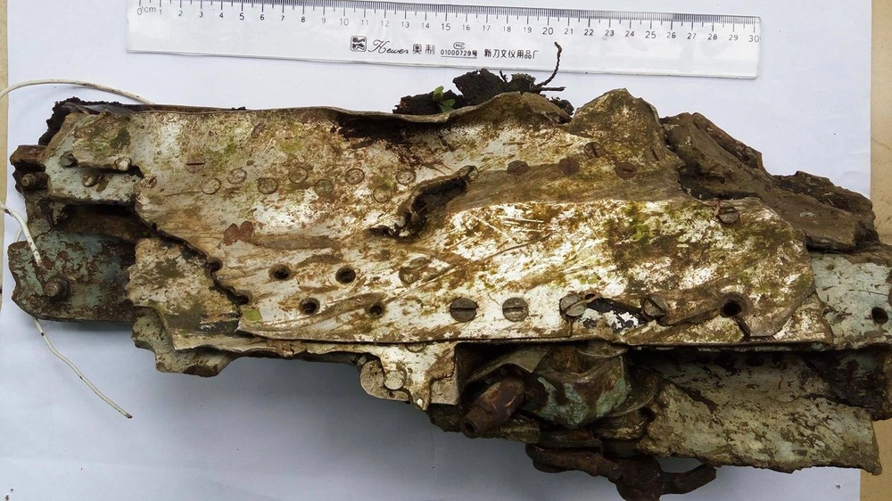 Người dân hai xã Mỹ Yên, Hoàng Nông (huyện Đại Từ, Thái Nguyên) là những người đầu tiên phát hiện ra manh mối quan trọng của chiếc MiG-21U mất tích. Trong ảnh: Kích thước mảnh vỡ trước khi được bàn giao cho Quân chủng Phòng không-Không quân ngày 28-2-2018.