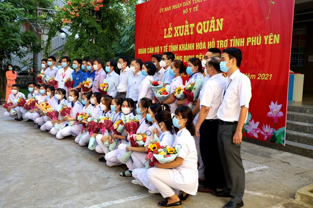Cùng sáng 2-7, Sở Y tế tỉnh Khánh Hòa cũng đã tổ chức lễ xuất quân cho đoàn y tế Khánh Hòa lên đường đến Phú Yên phối hợp với các đơn vị bạn chống dịch. Ông Đinh Văn Thiệu, Phó chủ tịch UBND tỉnh đã đến dự, tặng hoa và ra tận xe ô tô tiễn các thành viên lên đường.