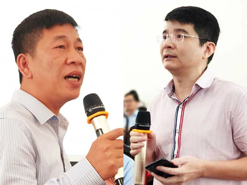 Ông Nguyễn Đức Trung (trái): “DNNN chưa được bảo đảm quyền tự chủ, tự chịu trách nhiệm theo cơ chế thị trường”. Ông Tạ Ngọc Nam: “Cần thành lập những “team” chuyên nghiệp đi cổ phần hóa ở cả trung ương và địa phương”. Ảnh: CHÂN LUẬN