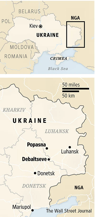 Các tay súng lực lượng ly khai bao vây Debaltseve (vị trí trên bản đồ miền Đông Ukraine). Ảnh: REUTERS và WALL STREET JOURNAL
