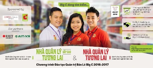 | Chương trình Đào tạo Quản trị Bán lẻ Big C 2016- 2017 bắt đầu xét tuyển từ tháng 7-2016 đến hết tháng 8-2016 nhằm chọn ra khoảng 45 ứng viên. Chương trình đào tạo kéo dài từ tháng 10-2016 đến tháng 9-2017, dưới hình thức xen kẽ vừa học lý thuyết vừa thực hành nghiệp vụ và đảm trách một vị trí quản lý tại siêu thị hay bộ phận hỗ trợ với hai chương trình riêng biệt: Chương trình Nhà quản lý cấp cao tương lai (Future Senior Manager) và Chương trình Nhà quản lý tương lai (Future Manager). |