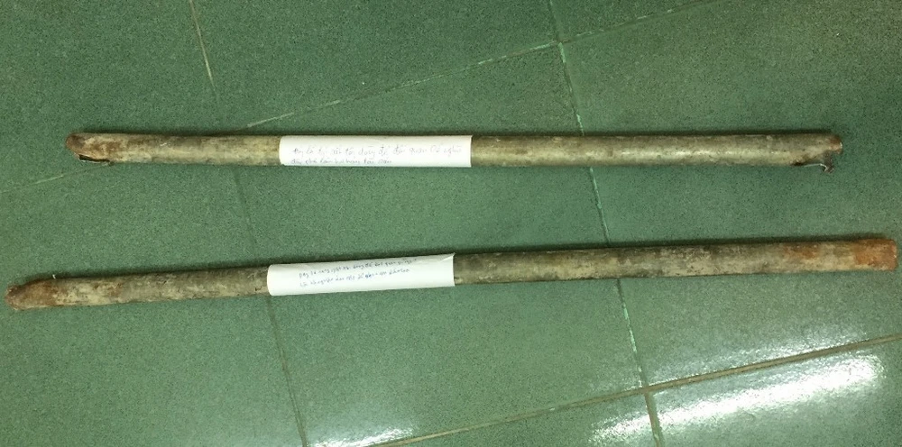 Tuýp sắt mà Tú đưa cho đồng phạm đi gây án. Ảnh: HẢI HIẾU