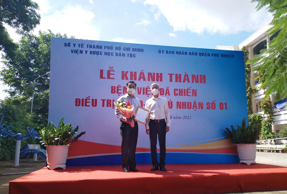 Tham dự lễ khánh thành có Phó chủ tịch UBND TP.HCM Võ Văn Hoan; Bí thư Quận ủy Phú Nhuận Phạm Hồng Sơn; Chủ tịch UBND quận Phú Nhuận Nguyễn Đông Tùng, cùng các y bác sĩ được phân công nhiệm vụ điều trị bệnh nhân COVID-19 tại bệnh viện dã chiến.