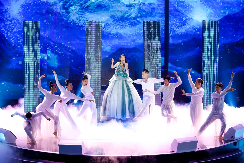 Mở màn chương trình Giọng hát Việt nhí đêm 29-12 là chiến binh Hà Quỳnh Như thuộc team Hồ Hoài Anh - Lưu Hương Giang. “Cô bé triệu view” xuất hiện như nàng công chúa và hoàn toàn chinh phục khán giả khi thể hiện ca khúc Trên đỉnh phù vân.