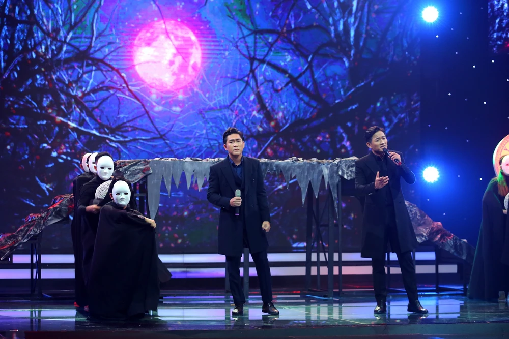 Tùng Anh và Quý Bình trình diễn Liên khúc Linh hồn tượng đá - Ngày vui qua mau (Lê Dinh, Minh Kỳ, Anh Bằng, Nhật Ngân) da diết, đầy cảm xúc, với tạo hình và câu chuyện dàn dựng như một phân cảnh trong bộ phim điện ảnh Hàn Quốc Giữa hai thế giới.