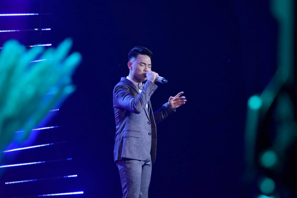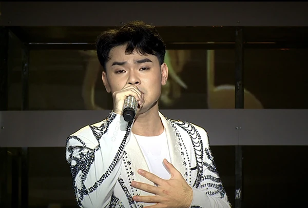 Trường Sang thể hiện ca khúc 'Dứt tình' sáng tác của ca sĩ Mạnh Quỳnh trong đêm chung kết. Ảnh: Chụp màn hình.
