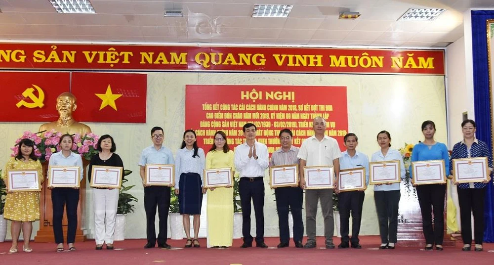UBND quận Tân Bình khen thưởng cho cá nhân, đơn vị có thành tích trong CCHC. Ảnh: Q.HUY