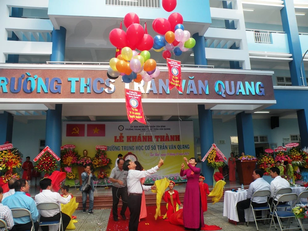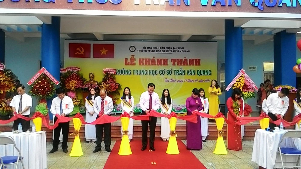 (PLO)- Trường THCS Trần Văn Quang, phường 10, quận Tân Bình (TP.HCM) đã được khánh thành vào sáng nay, 19-1.