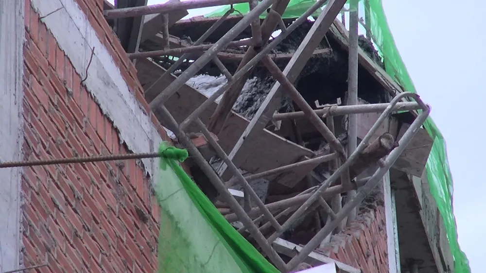 Ghi nhận, lầu ba công trình đang xây dựng đổ sập nhiều phần tường, gạch, vữa…, rơi vào một tiệm điện cơ ở bên cạnh.