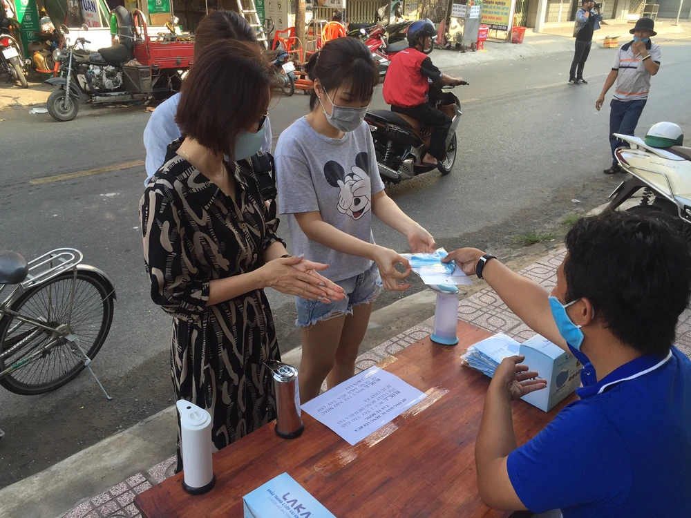 Sau khi rửa tay, nếu muốn người dân có thể nhận khẩu trang miễn phí.