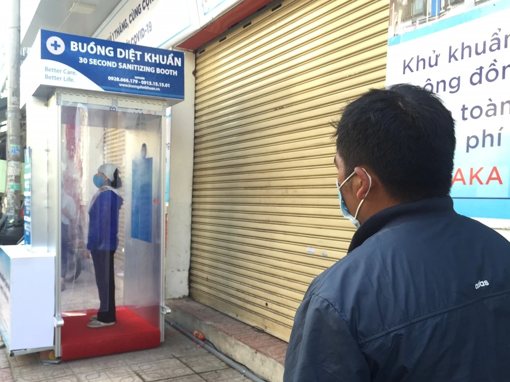 Người dân chỉ cần bước vào hệ thống sẽ khuếch tán dung dịch diệt khuẩn toàn thân.