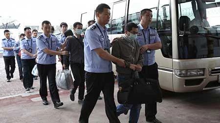 Các nghi phạm tham nhũng lẩn trốn tại Indonesia bị dẫn độ về Trung Quốc. Ảnh: TÂN HOA XÃ.