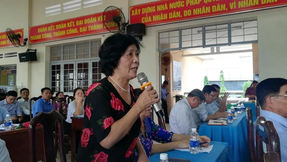 Bà Xuân phát biểu ý kiến trong buổi tiếp xúc. ẢNH: THANH TUYỀN.